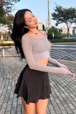 Living for Today優雅假兩件網紗長袖瑜珈服